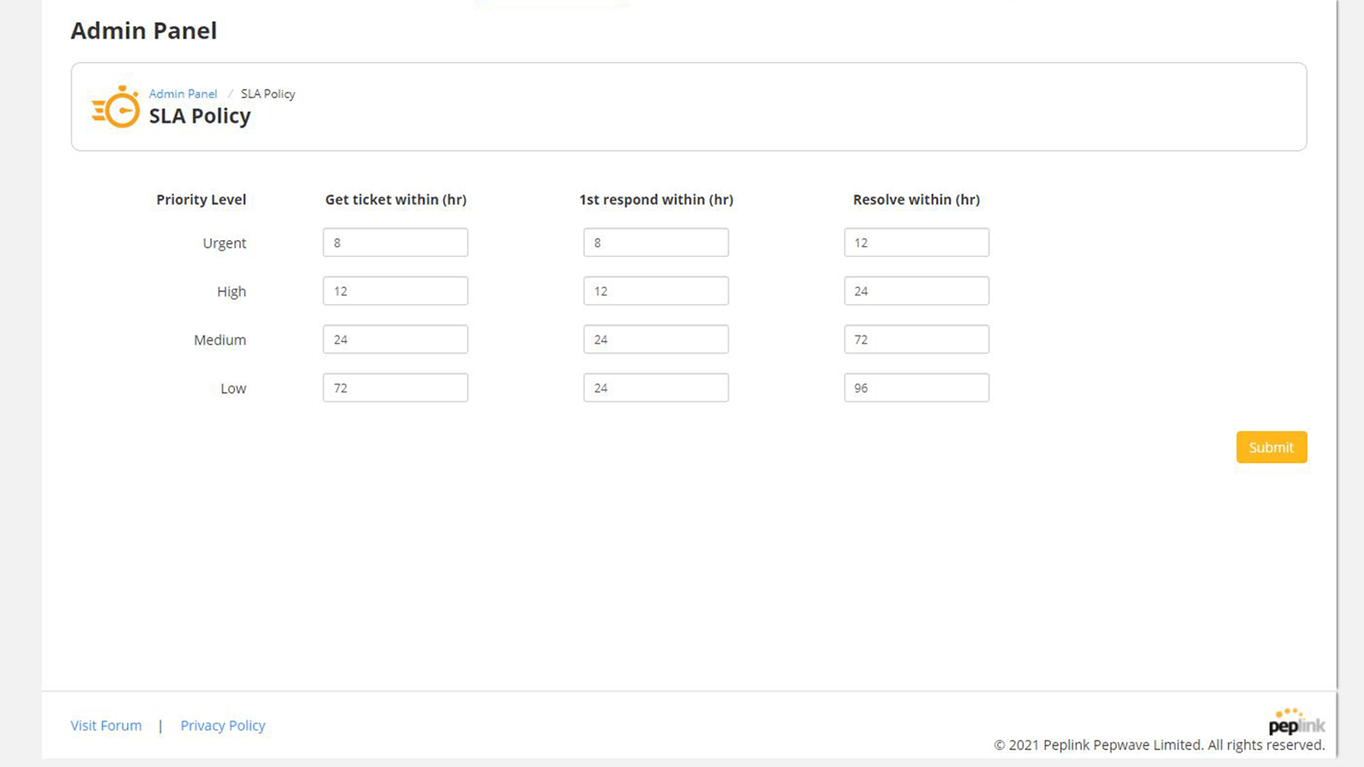 Pepxim Ticketing System’s SLA Policy allows administrators to customize the time criteria for each priority level. In the admin panel, the priorities for domains can also be classified into “low”, “medium”, “high”, and “urgent.”