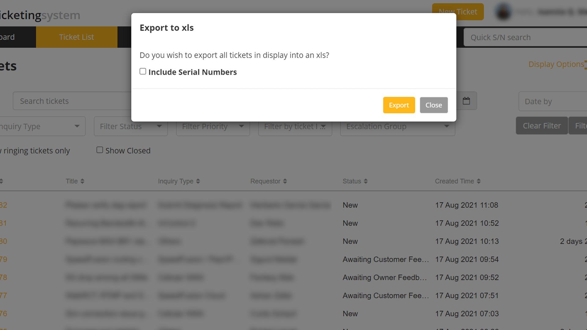 A ticket summary is available on the dashboard of Pepxim Ticketing System to give a general overview of tickets in progress and outgoing. Information of tickets can also be exported in spreadsheet format from the Ticket List.